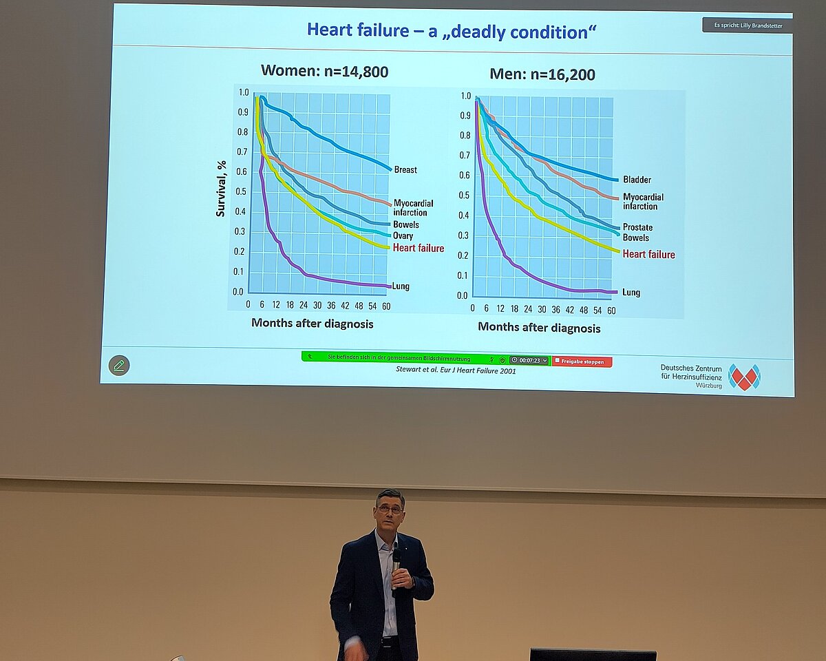 Im wissenschaftlichen Eröffnungsvortrag legte Prof. Stefan Störk erklärt anschließend, warum die Herzinsuffizienz als „epidemische“ Erkrankung gilt. Er betonte die enorme Komplexität des Krankheitsbildes, das eine präzise Phänotypisierung erfordert und maßgeblich von Begleiterkrankungen (Komorbiditäten) beeinflusst wird.